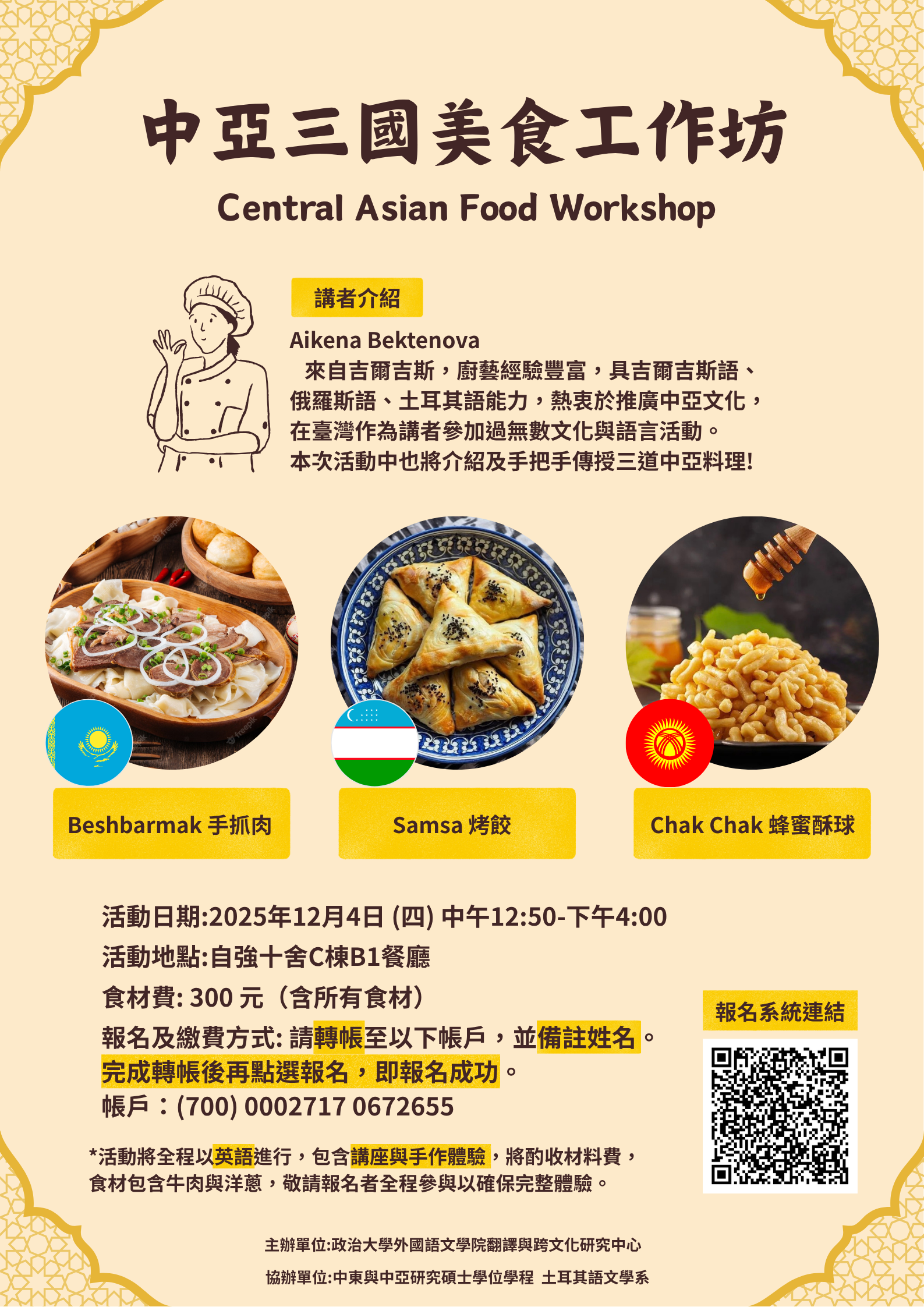 全校唯一的中亞美食工作坊,歡迎報名參加!